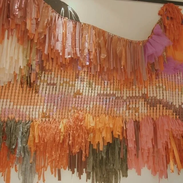 They are drawn to repetition, patternization, color, and wind in its natural motion. Their “streams” consist of table cloths, shower curtains, and painters drop cloths. The streamers have so many different qualities, characteristics, and moods depending on the environment; be it violent, stoic, sinuous, or light. Observing these moods in the different kinds of weather, they provide endless displays of being, which creates a new image, vision, color, pattern, and painting with every gust of wind.